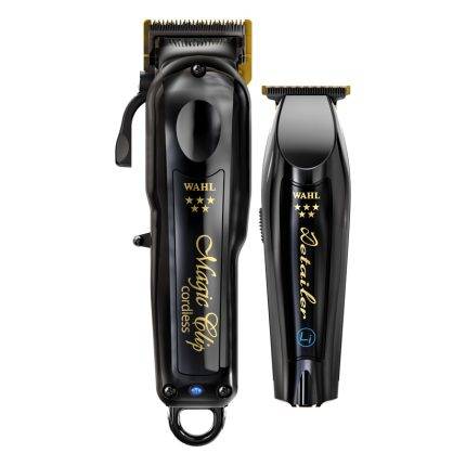 В комплекте: Машинка для стрижки в золотом корпусе, Триммер для окантовки в золотом корпусе, Док-станция-подставка (зарядная база)1шт, Набор насадок для машинки 10шт, Отвертка, Кисточка для чистки, Смазочное масло для ножей, Адаптер (зарядное устройство) 1шт.