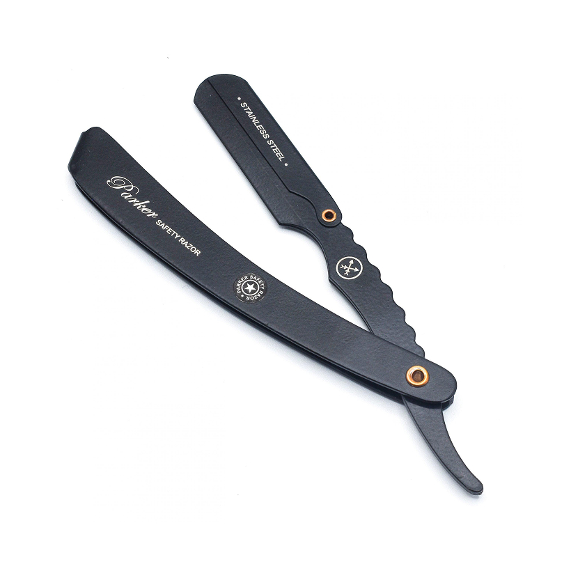 Профессиональная барберская бритва имеет уникальный зажим, который обеспечивает идеальное выравнивание лезвия, а также массивную рукоять и держатель лезвия из нержавеющей стали с элегантным черным покрытием.