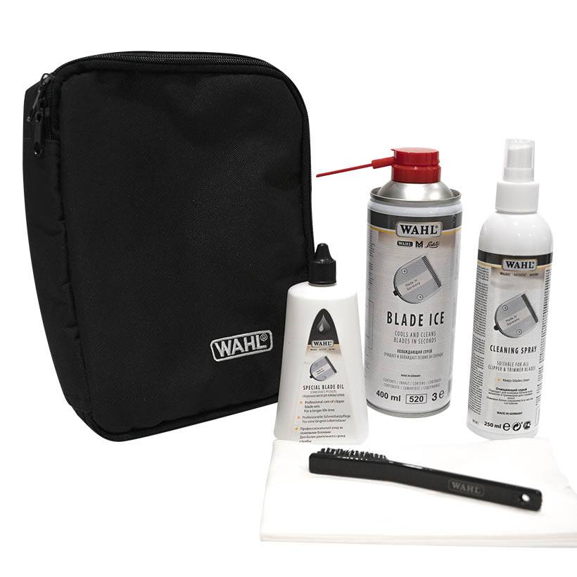 Набор средств и аксессуаров Wahl Blade Care Set 1000-7400 разработан для комплексного ухода за ножевыми блоками парикмахерских или грумерских машинок. В комплект входит охлаждающий спрей, гигиенический спрей и масло для смазки ножей. Набор поставляется в сумочке Wahl Clipper Pouch для удобного хранения или перевозки. Все компоненты сделаны в Германии, Венгрии и Китае.